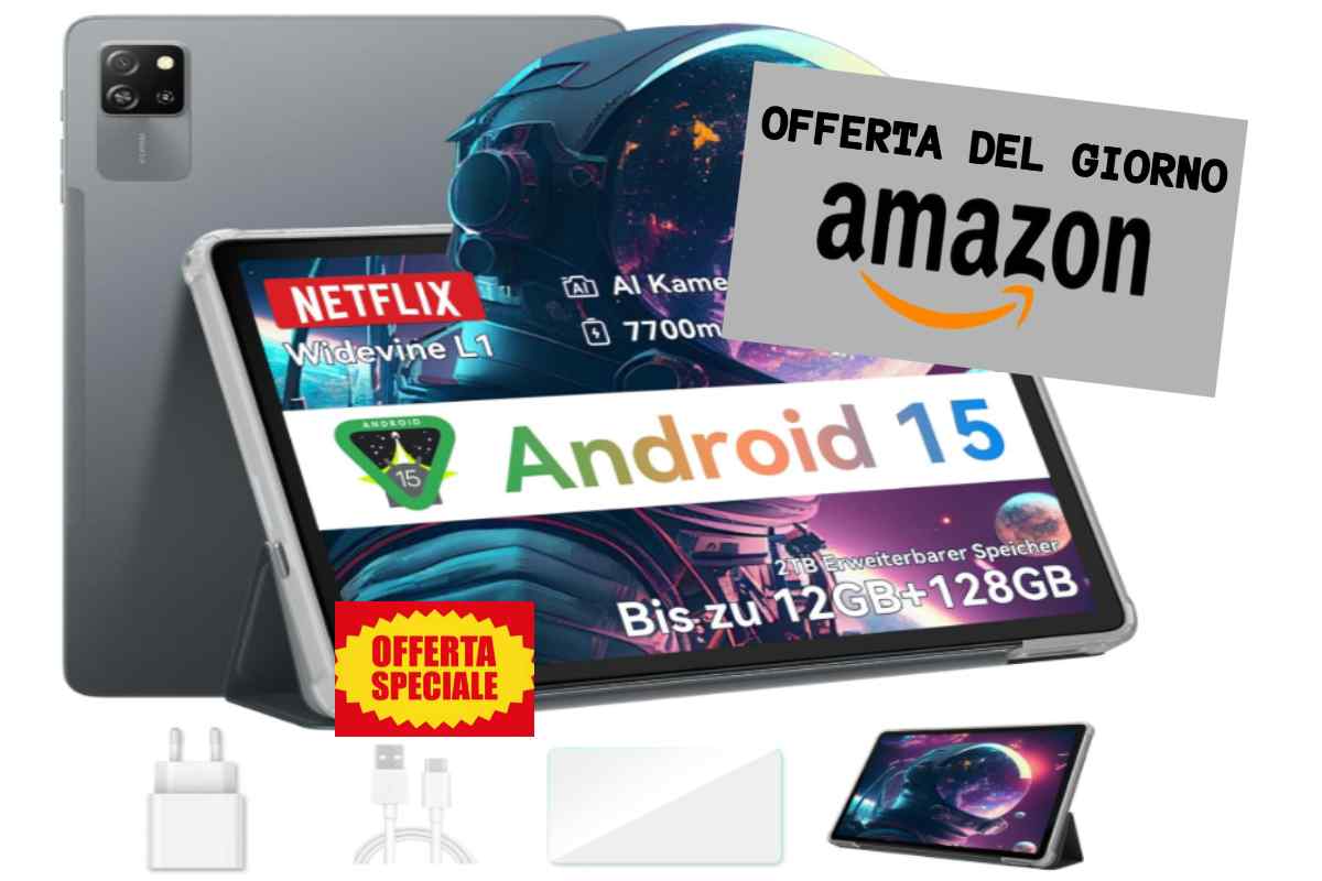 Lo schermo è un buon HD IPS da 10 pollici con una capiente batteria da 7700 mah e un corpo in metallo molto curato e rifinito. Esce con Android 15 e funzioni AI integrate. Di solito questo Blackview Tab60Pro viene venduto su Amazon a circa 199.99 euro ma mentre parliamo può essere acquistato ad appena 119.99 euro con uno sconto del 40%.