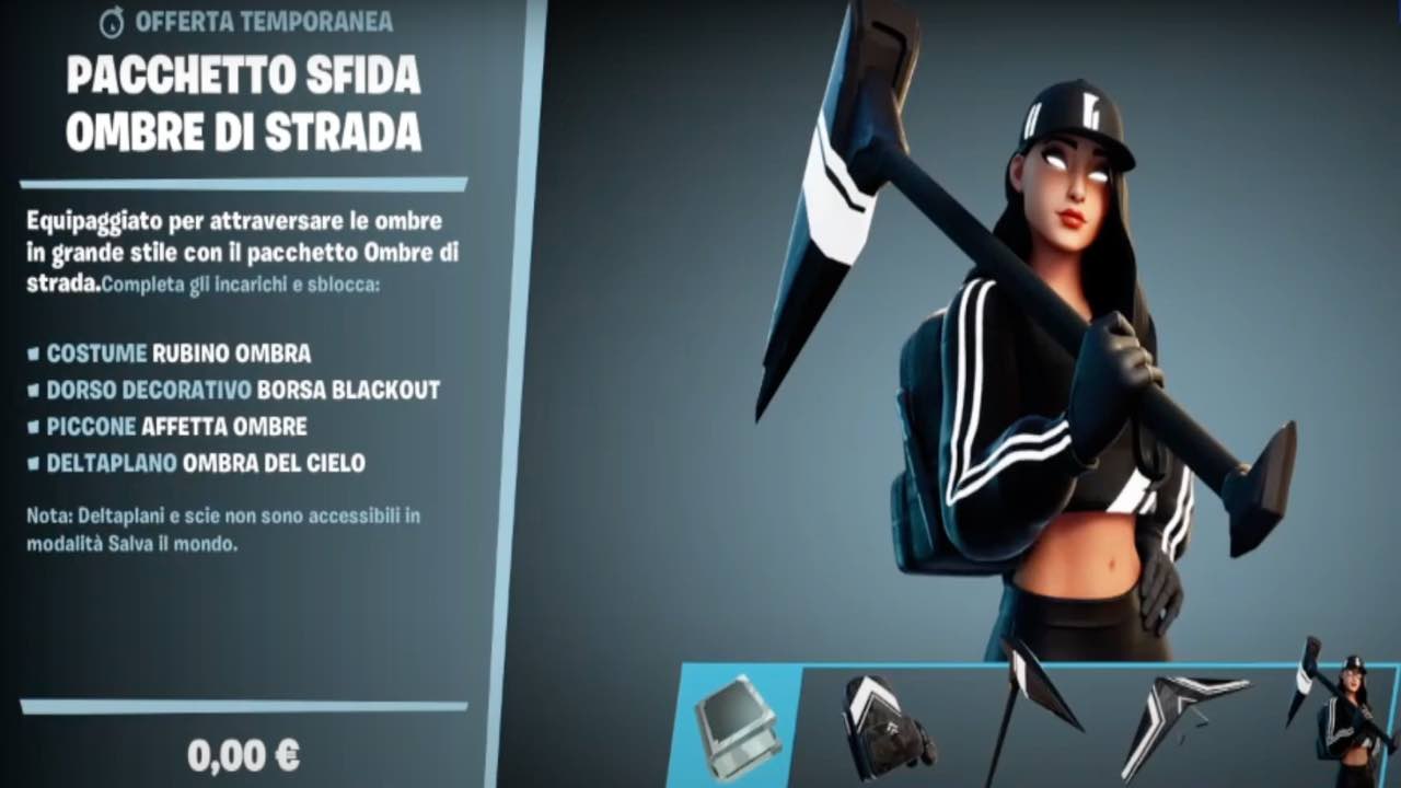 Fortnite è di nuovo ricca di sorprese. Ora è possibile sbloccare il bundle Ombre di Strada ed ottenere gratis la skin Rubino Ombra