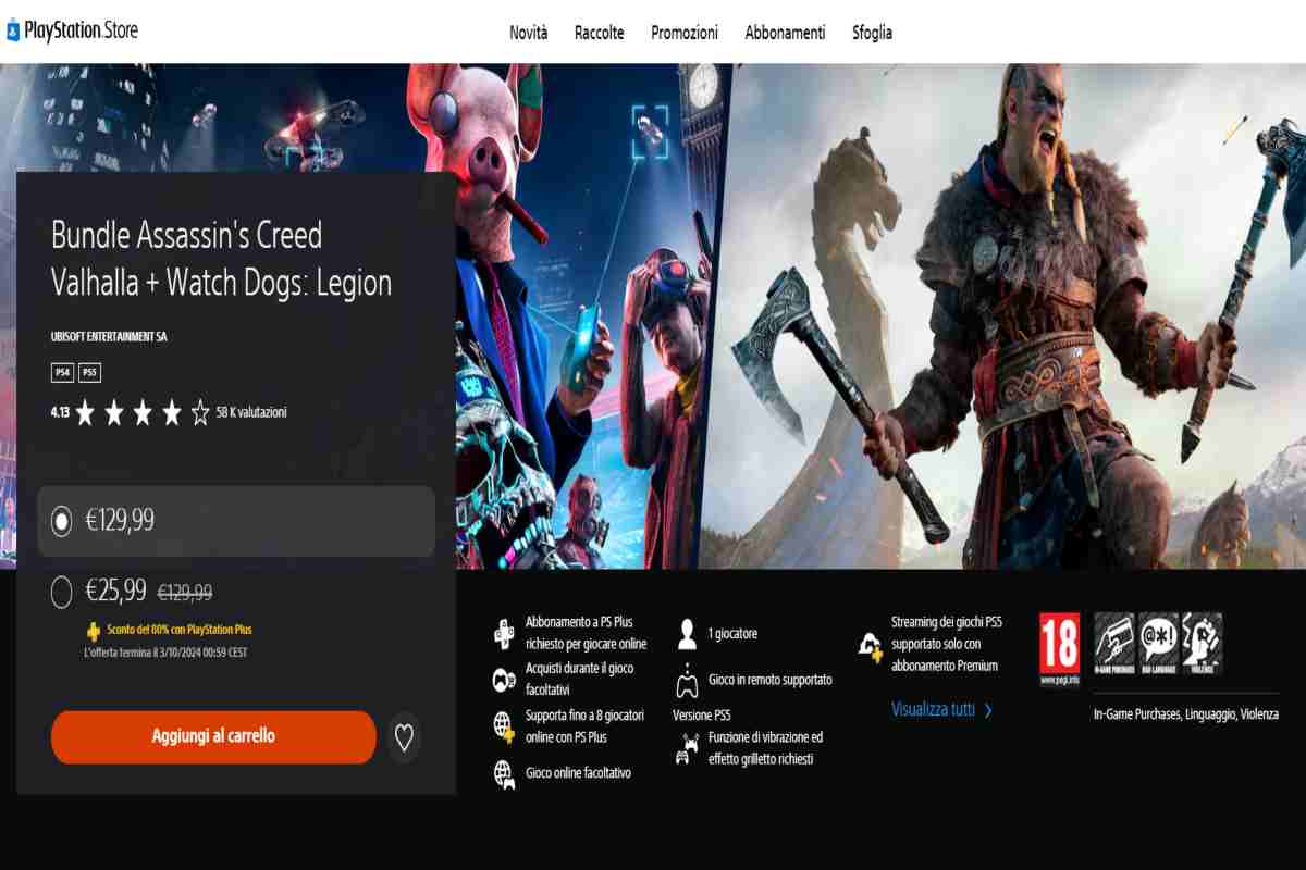 - Assassin’s Creed Valhalla + Watch Dogs Legion a 25,99€ – Con uno sconto dell’80%