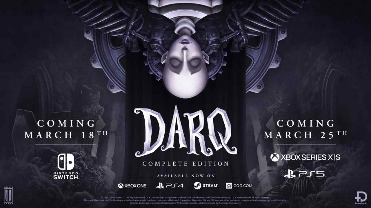 DARQ, il puzzle game che sembra uscito dalla mente di Tim Burton, arriva ora anche sulle console next gen. Le date del titolo prodotto da Unfold Games e distribuito da Feardemic uscirà il 18 marzo per Switch e il 25 marzo su PS5 e Xbox Series X/S. Chi è in possesso della versione per console precedenti può passare alla versione next gen gratuitamente.