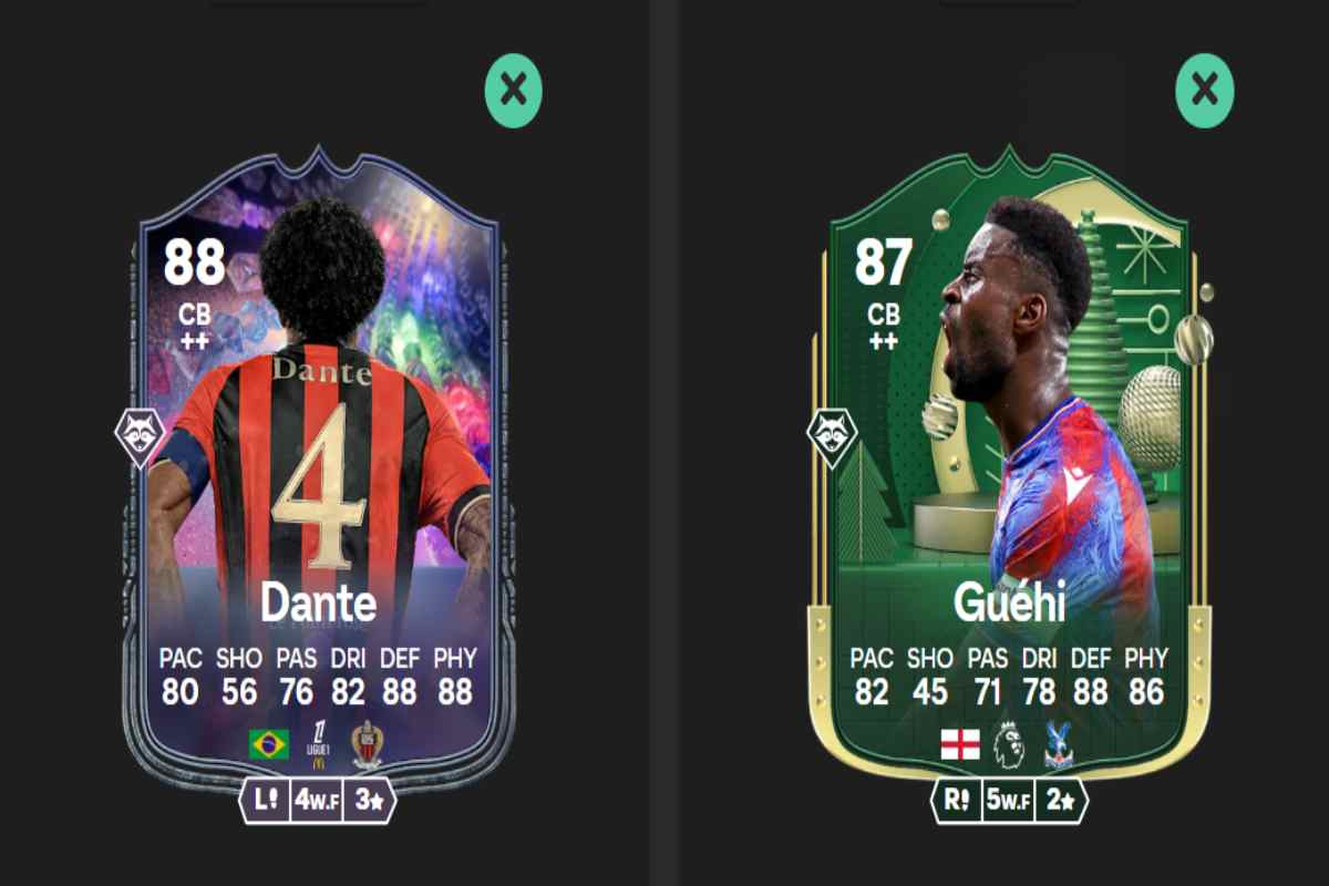 Alla luce di questa modifica non possiamo che consigliarvi due giocatori che dopo questo aggiornamento sono diventati fortissimi, il meta, entrambi con Anticipo come Playstyles+. Da una parte abbiamo Guehi versione 87 del Crystal Palace, dall’altra il veterano Dante versione 88 del Nizza. Con meno di 50k crediti li prendete entrambi e avrete una coppia di centrali che rubano palla e vi faranno ripartire.