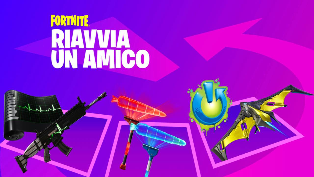Su Fortnite è possibile ottenere diversi bonus gratis. In palio piccone, deltaplano, spray e tanto altro grazie a “riavvia un amico”
