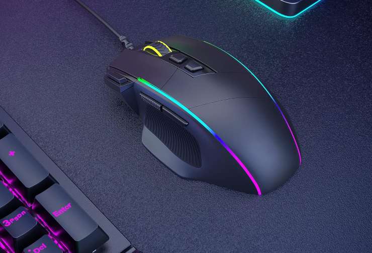 Il Dacoity RGB è un mouse da gaming che vi permette di avere ottime prestazioni, in linea col precedente device della guida, e costa meno della metà, inoltre in questo periodo è in promozione su Amazon al 27% sconto diventando un vero affare. Una delle sue caratteristiche vincenti è la rientranza zigrinata, che potete ammirare su entrambi i lati, in grado di permettere al pollice di riposare durante il gaming.