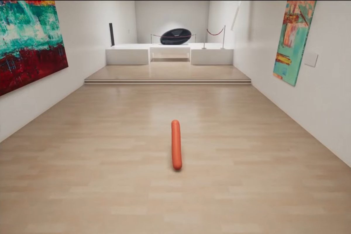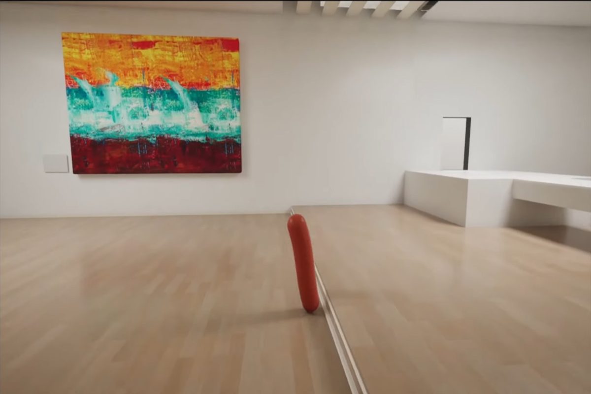 Il gioco in questione ci fa guidare un grosso wurstel che, da solo, esplora e si muove in un museo di arte moderna, di fatto diventando così oggetto e mezzo della nostra esplorazione e soprattutto di quello che vuole essere un modo per far riflettere e anche parecchio i videogiocatori. Non a caso il prodotto è presentato quasi fosse un tomo di filosofia, un’opera seminale per un pensiero nuovo.