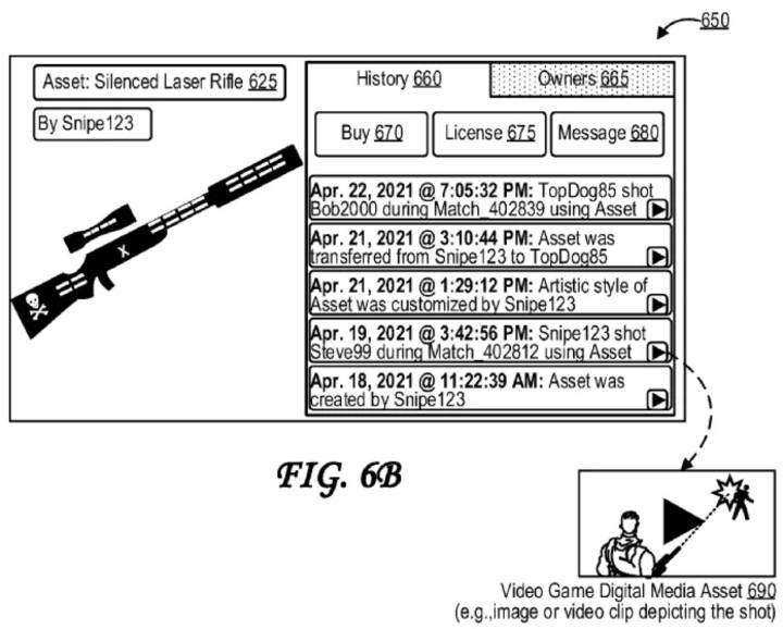 Il brevetto riguarda una tecnologia che dovrebbe essere in grado di ricostruire la storia di asset digitali. E per asset digitali si intendono non solo oggetti cosmetici presenti in un titolo ma anche scene di gameplay. La stessa tecnologia dovrebbe poi trasformare questi oggetti digitali di varia natura in oggetti unici e assegnare il possesso di questi oggetti unici ad alcuni giocatori che potrebbero poi scambiarsi il possesso di questi oggetti unici. Esattamente come tanti collezionano, in America, le figurine dei giocatori di baseball con alcune che sono estremamente più rare e quindi estremamente più costose e ricercate di altre.