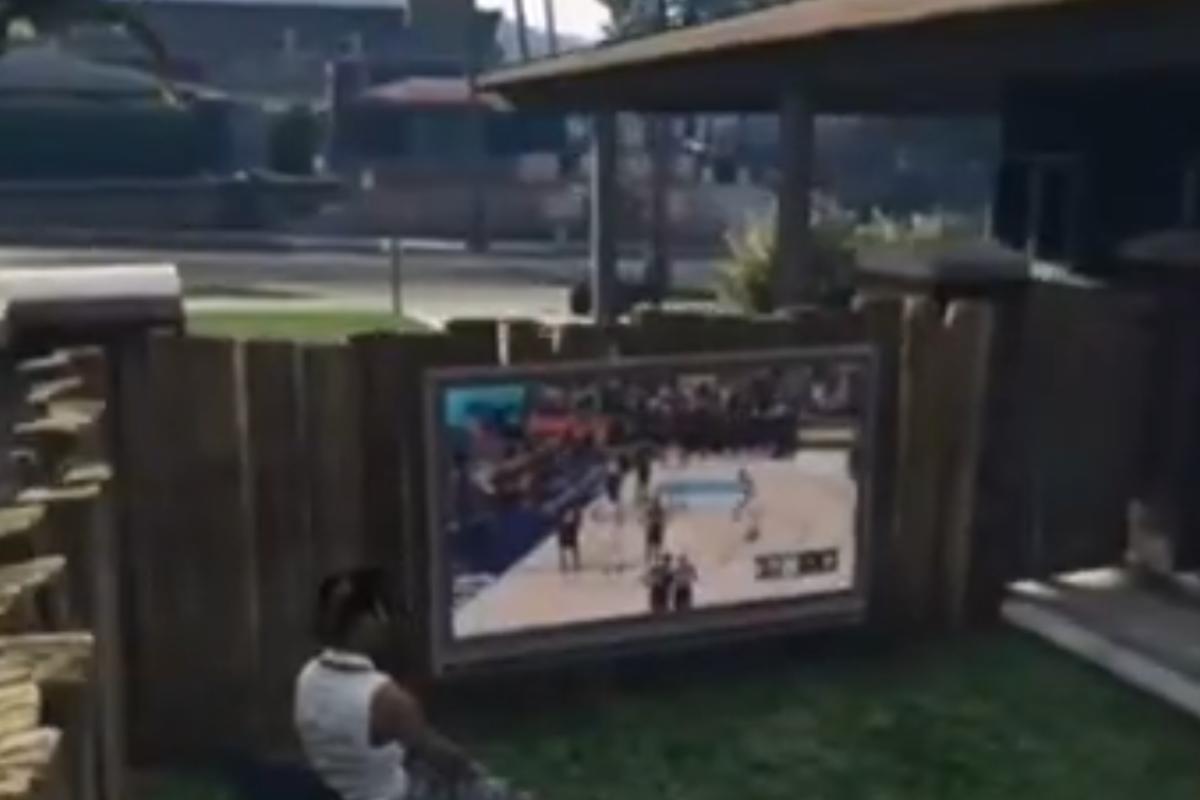 Qualcuno, in un server, è infatti incappato in un televisore messo nel giardino di una villetta con diverse persone sedute intorno. Queste persone stavano guardando una partita. Una partita di basket che però non era uno scontro fittizio tra squadre tanto per rendere la simulazione di Rockstar Games un po’ più reale. Si trattava nei fatti di una partita della NBA.