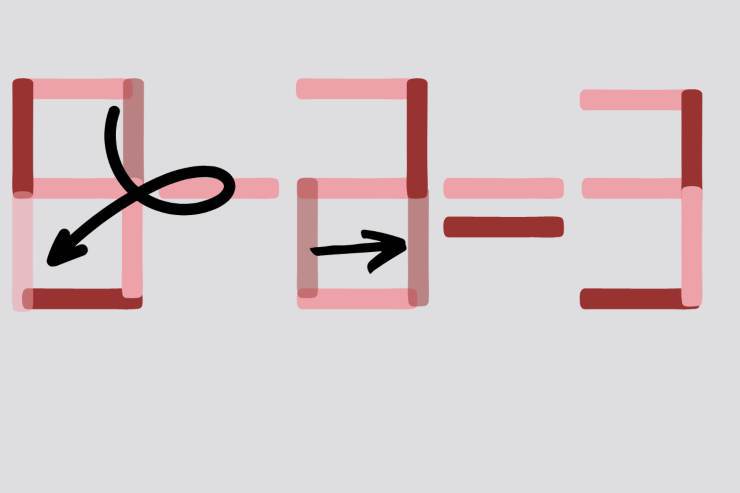 Guardando la seconda immagine siamo convinti del fatto che rimarrete straniti. Ebbene, la soluzione non consisteva nel cercare necessariamente una risposta, quanto più nello spostare la posizione dei fiammiferi in maniera tale da “correggere” la sequenza numerica. A primo impatto poteva sembrare un test d’intelligenza molto difficile, è vero, ma in realtà – come avrete costatato – non era niente di particolarmente complicato. Riflettendoci quanto bastava, difatti, chiunque l’avrebbe risolta entro un tempo limite piuttosto breve.