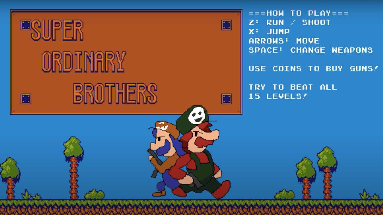 Super Ordinary Brothers si presenta come il famosissimo Super Mario Bros. ma con una particolarità in più. Infatti nel gioco indie si muore per sempre