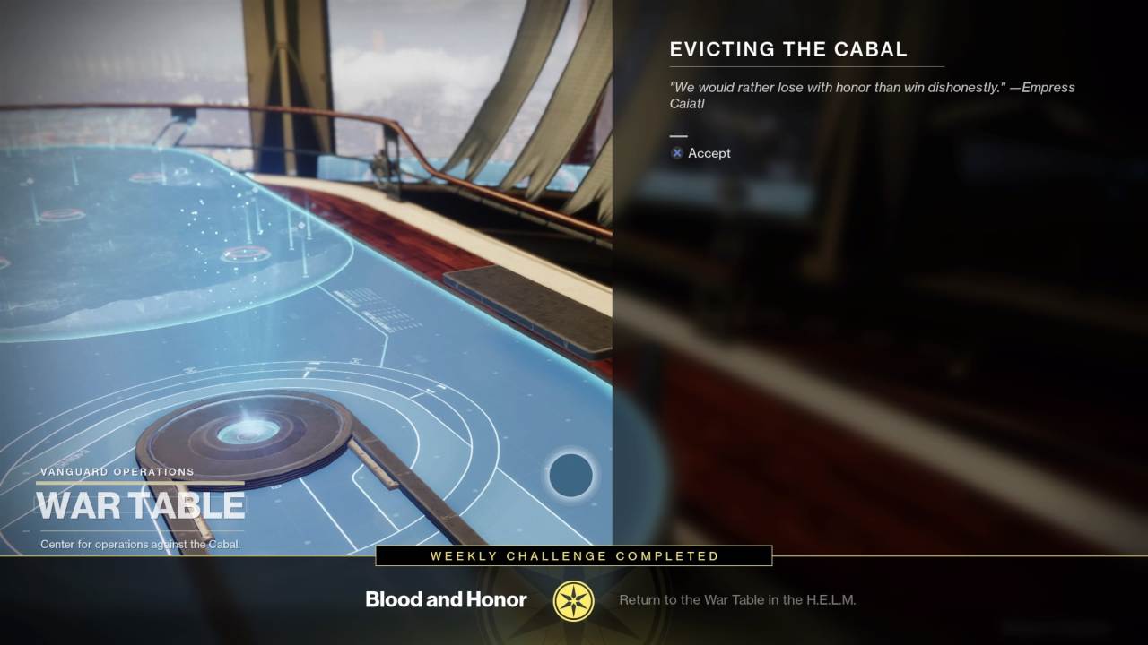 Just to be sure I didn’t imagine it last week, I took a screen grab of the bounty challenge completion banner that says ‘Blood and Honor’. Once again, I call on @Bungie to recognize and replace this N*zi slogan. @A_dmg04 @Cozmo23 https://t.co/tNIvO283G7 pic.twitter.com/TuIKUbwnEO