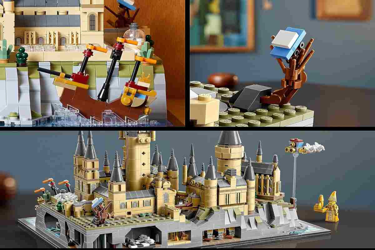 In questo set LEGO sono presenti anche la Nave di Durmstrang, la Carrozza di Beauxbatons con i cavalli alati che “volano” su un supporto traslucido, e la Ford Anglia tra i rami del Platano Picchiatore. Il modellino del Castello di Hogwarts firmato LEGO misura oltre 21 cm di altezza e 35 cm di larghezza.