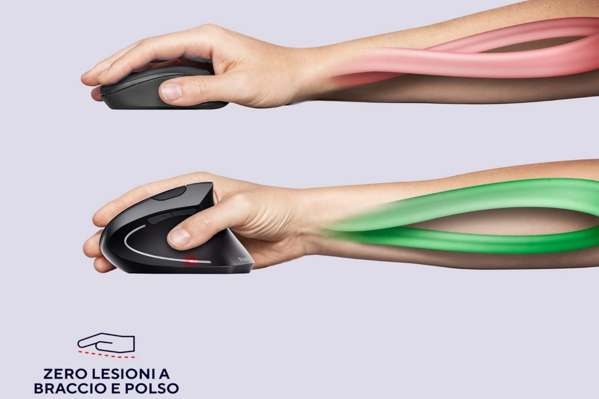Avere per ora la mano sul mouse crea uno stress enorme alle dita, alla stessa mano, sul polso, sui nervi e i legamenti che caratterizzano gli arti superiori, ma anche sul braccio e sul collo. Insomma è una lenta tortura che se protratta per tanto tempo può causare anche danni ingenti. Ecco perché tutti stanno adottando soluzioni come questo mouse verticale Trust oggi in forte sconto.