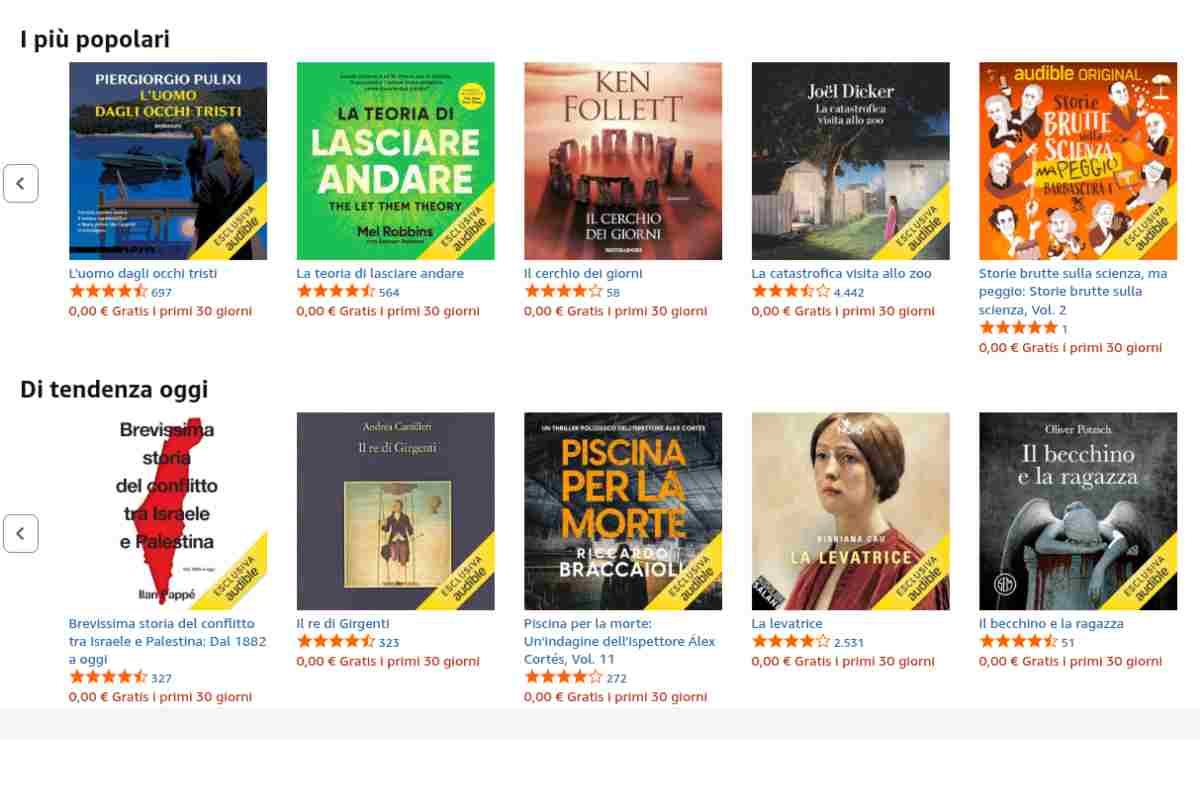 L’offerta è quanto mai interessante perché in pratica consente di avere tre mesi di audiolibri e podcast, compresi moltissimi prodotti in esclusiva che si trovano solo sulla piattaforma di Amazon, senza dover collegare necessariamente l’abbonamento a quello di Amazon Prime