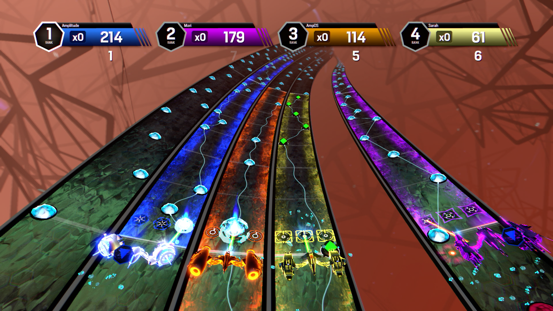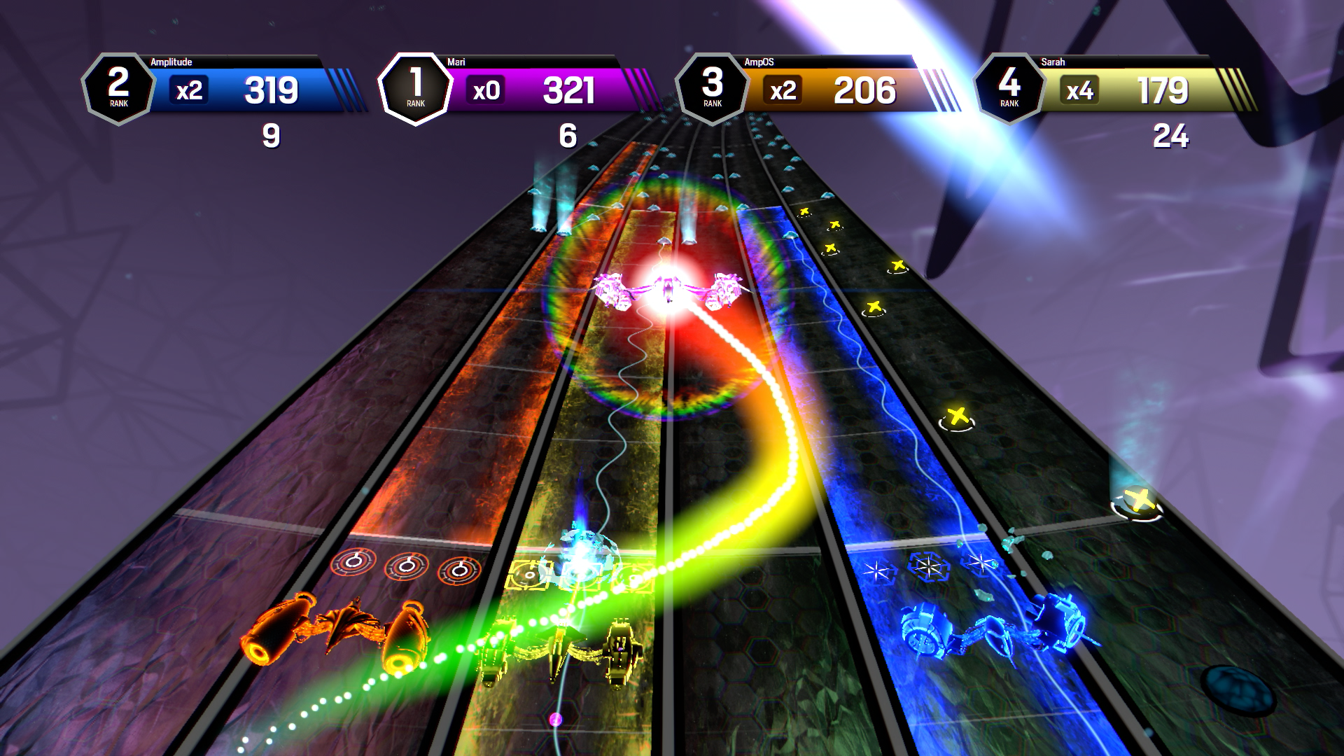 Sotto l’aspetto tecnico è stato svolto un lavoro eccellente, il titolo gira a 60 FPS senza nessun problema, e vista la natura dello stesso era fondamentale riuscirci, rendendo Amplitude un tripudio di colori e, non mi stancherò mai di ripeterlo, un’esperienza psichedelica fuori dal comune: sarebbe molto interessante una versione del titolo in VR, “per vedere l’effetto che fa” (cit.).