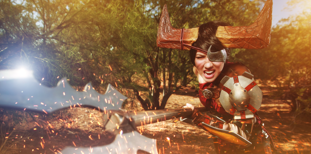 Dragon Age: Inquisition: la cosplayer Amie Lynn veste i panni di Iron Bull