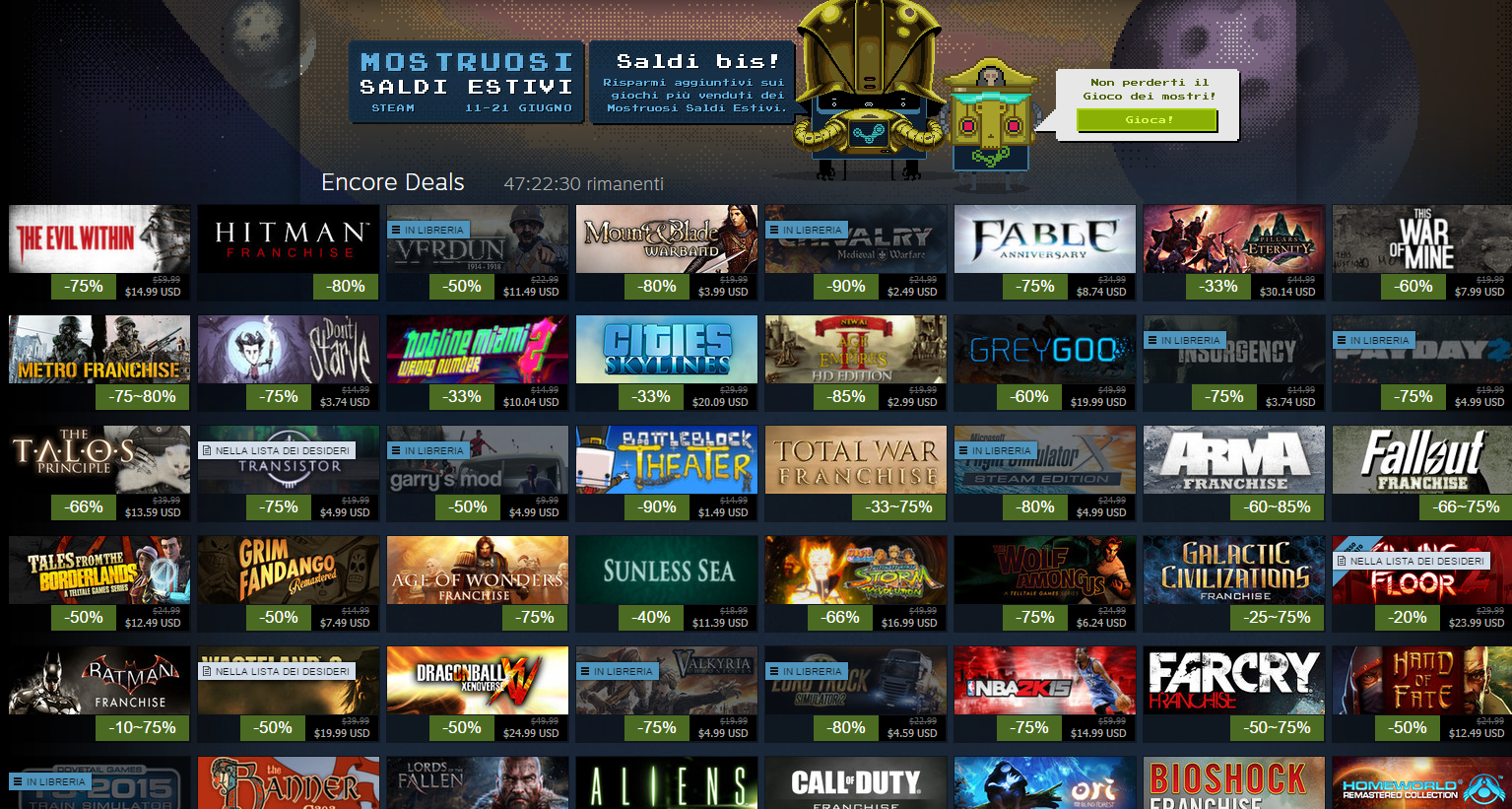Steam: “Mostruosi Saldi Estivi” si concludono con i “Saldi Bis”