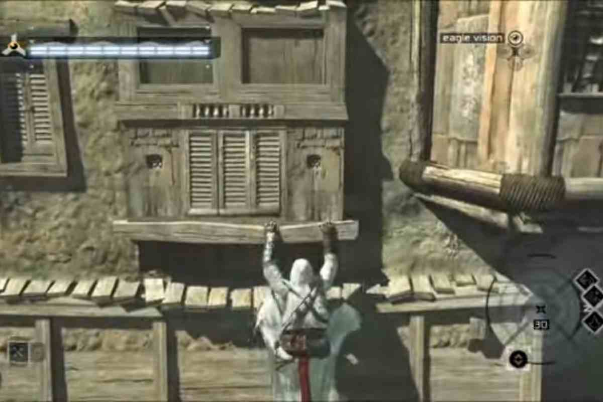 Andando in ordine più o meno cronologico, un segreto nascosto in bella mostra è una citazione che si trova all’interno del primo Assassin’s Creed. Arrampicandovi sulle pareti delle case dei villaggi che è possibile utilizzare come parco giochi vi sarà capitato sicuramente di imbattervi in grosse finestre chiuse.