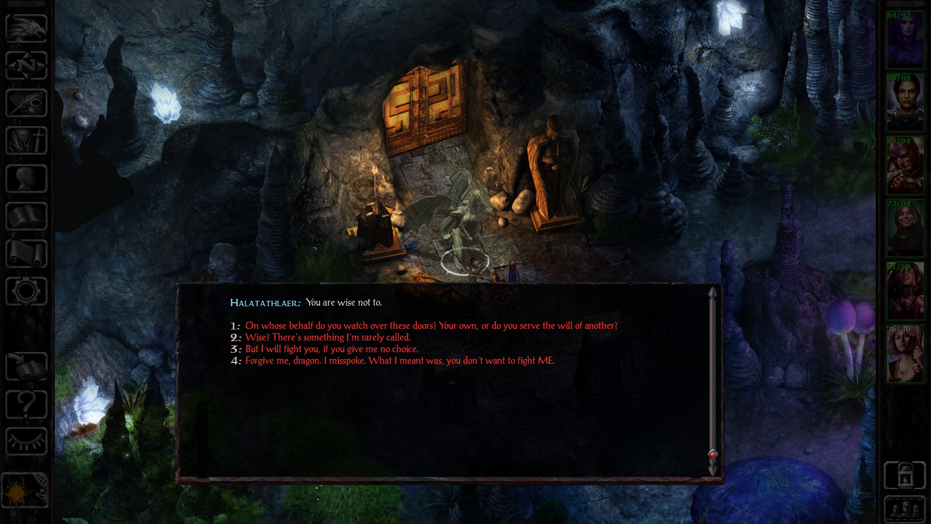 Perché dico questo? Perché il titolo di per sé sì, ”ci può stare” (passatemi il termine gergale), è valido, discretamente realizzato, ben curato nella trama e tutto quello che volete, ma la verità è che gli anni sono passati, tanto per noi quanto per i videogiochi. Quello che magari una volta appariva ai nostri occhi e al nostro cuore come un capolavoro, adesso lascia un po’ l’amaro in bocca, e non perché contenga strafalcioni, ma semplicemente perché ci siamo abituati ad avere di meglio. E ragazzi, ve lo sto dicendo da Fanboy. Non so quante ore io abbia speso sopra quel CD, sopra la sua prima espansione e sopra al secondo capitolo, ma siamo franchi, era un altra era. A ripensarci a volte ho persino fantasticato su Jaheira… mhhhhh…