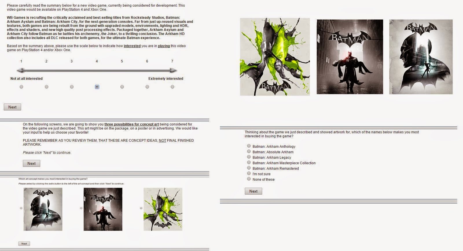 Warner Bros Games ha deciso di sviluppare le versioni rimasterizzate di Batman: Arkham Asylum e Batman: Arkham City e di pubblicarle su PlayStation 4 e Xbox One? Al momento non ci sono ancora conferme ufficiali, ma il publisher ha inviato ai fan un sondaggio dedicato proprio a queste eventuali “Remastered”. Lo scopo del sondaggio è quello di testare l’interesse dei giocatori verso il ritorno dei due giochi, ma anche chiedere suggerimenti sul titolo della nuova versione (che dovrebbe includere oltre ai primi due capitoli di “Batman Arkham” anche tutti i DLC pubblicati) e sulla box-art da assegnare alla custodia del gioco.