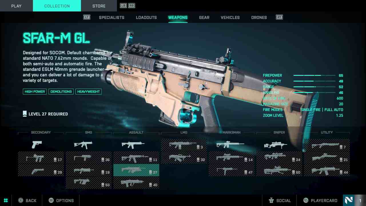 Facendo un rapido calcolo di quello che si vede sulla schermata pubblicata su reddit dall’utente Aaronfrogger, salterebbe fuori che dentro Battlefield 2042 ci sono in totale 22 armi diverse: 3 fucili da cecchino, 3 fucili a ampia gittata , 3 armi secondarie tre armi definite “ utility” 4 mitra, 2 mitragliatrici leggere e 4 fucili d’assalto.