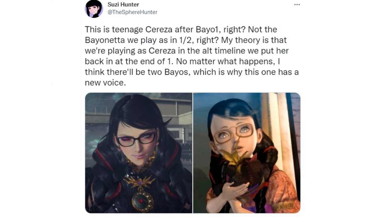 Nel più recente Nintendo Direct c’è stato spazio per un trailer di Bayonetta 3 e tutti si sono subito accorti che qualcosa non tornava. In particolare il doppiaggio del personaggio era leggermente diverso così come l’aspetto esteriore. Da queste modifiche è partita una teoria che però sembra addirittura fondata. A spiegarla bene e senza farsi prendere dal demone della cospirazione ci ha pensato su Twitter Suzi Hunter che potrebbe aver trovato la soluzione.