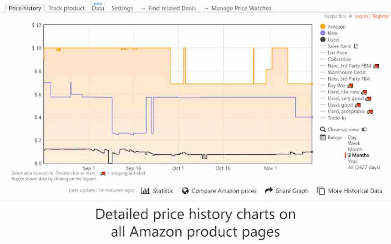 Ebbene, con i tracker dei prezzi questo problema viene immediatamente risolto. La traccia indelebile vi mostra esattamente quanto costava quel prodotto poche settimane, o mesi, o addirittura anni fa, e quanto costa ora, dandovi così un quadro chiaro e completo degli andamenti di prezzo. Tra i più famosi attualmente disponibili, vi consigliamo Keepa, una vera e propria companion irrinunciabile in campo di acquisti su Amazon.