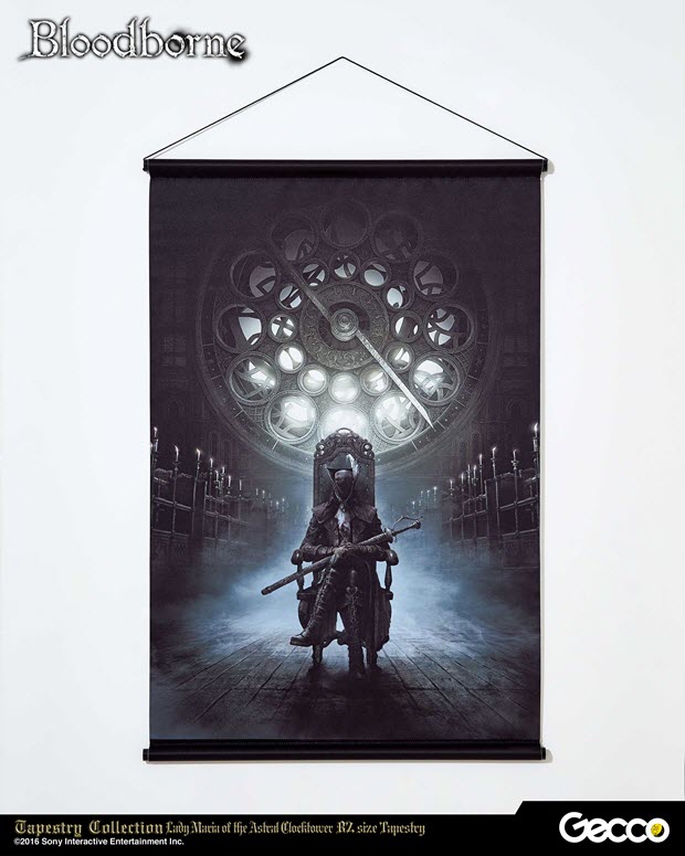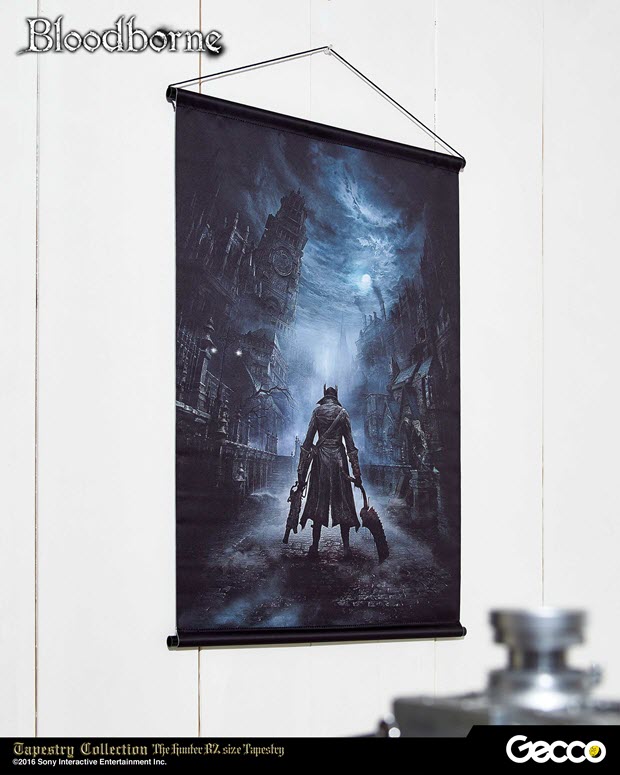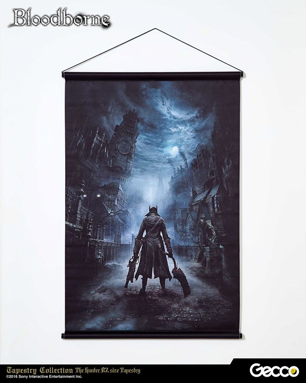 La Tapestry Collection della Gecco si arricchisce di due nuovi wall scroll, grandi poster in tessuto, dedicati a Bloodborne. I due nuovi soggetti presentati dall’azienda giapponese sono ispirati rispettivamente alla cover art del gioco e della sua espansione The Old Hunters. I poster in tessuto della Tapestry Collection presentano dimensioni di 72,8 cm x 51,5 cm e sono realizzati in poliestere di grande qualità che mette in risalto i colori dei soggetti a cui sono dedicati. La loro uscita è prevista entro luglio 2016 al prezzo di circa 38 €.