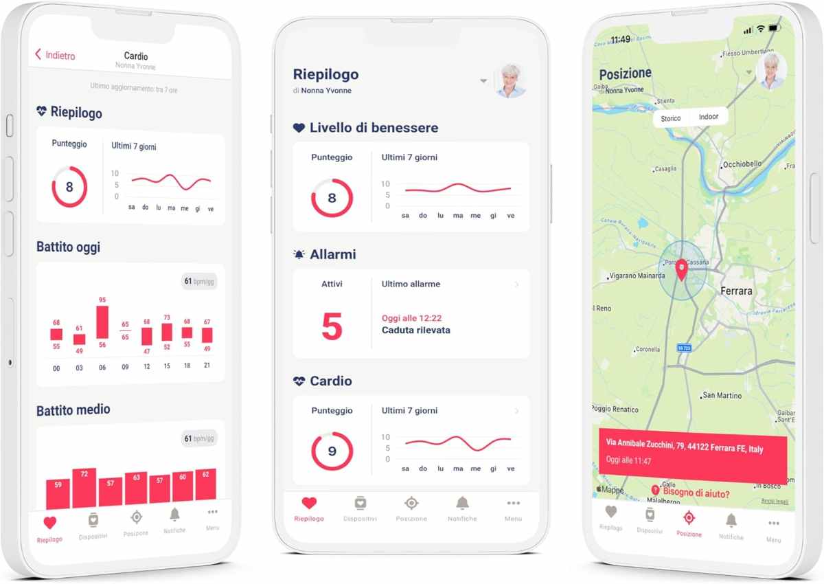 Non c’è bisogno di mettere schede SIM, basette o altro. Non è necessario che la persona a cui viene applicato abbia un proprio smartphone e non serve neanche un collegamento col Wi-Fi di casa.