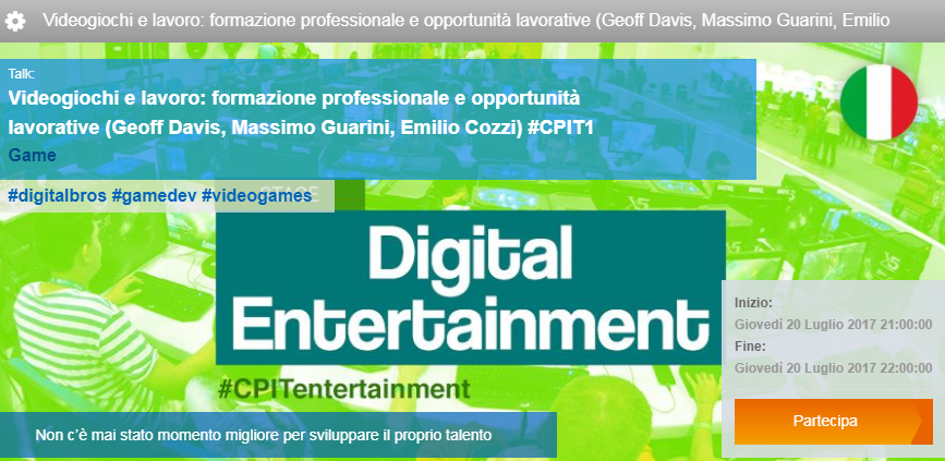 Durante l’incontro, Geoffrey M. Davis (Direttore Generale della DBGA) parlerà dell’esperienza maturata dall’Academy nella formazione di nuovi talenti per la creazione della Game Economy in Italia, mentre Massimo Guarini (fondatore e CEO di Ovosonico) racconterà la sua esperienza nella scena degli sviluppatori italiani e porterà ad esempio la sua storia.