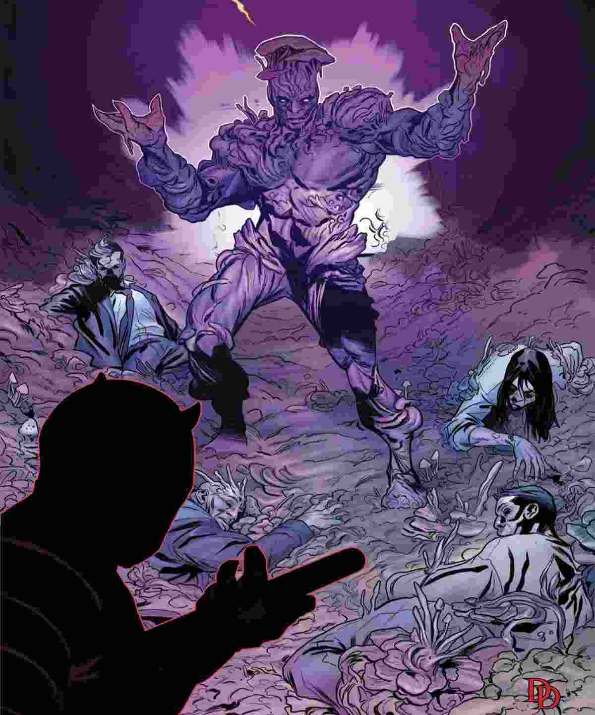 Seguendolo per tutta la città la rete fungina, il supereroe in rosso scende nel seminterrato di un edificio completamente invaso da miceli. Lì incontra diverse persone i cui corpi sono stati assorbiti dal fungo, trasformandoli creature simile a quelle infetti dal cordyceps in The Last of Us. Uno strano collegamento!