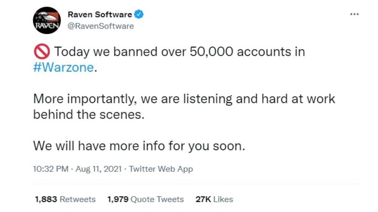 Raven Software ha annunciato su Twitter di aver cacciato via da CoD Warzone altri 50.000 account. E nello stesso messaggio ha finalmente dato ai giocatori frustrati un barlume di speranza per il futuro.