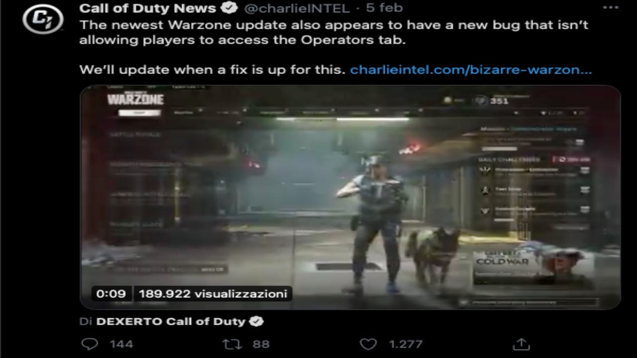 È stato fatto notare, come nella foto poco sopra, che non si riesce più ad accedere alla scheda Operatori dal menu principale da quando è stata rilasciata la patch 1.31 di Call of Duty Warzone. Un’altra segnalazione è inerente alla scomparsa degli hitmarker, ossia gli indicatori di danno che segnalano i proiettili andati a segno.