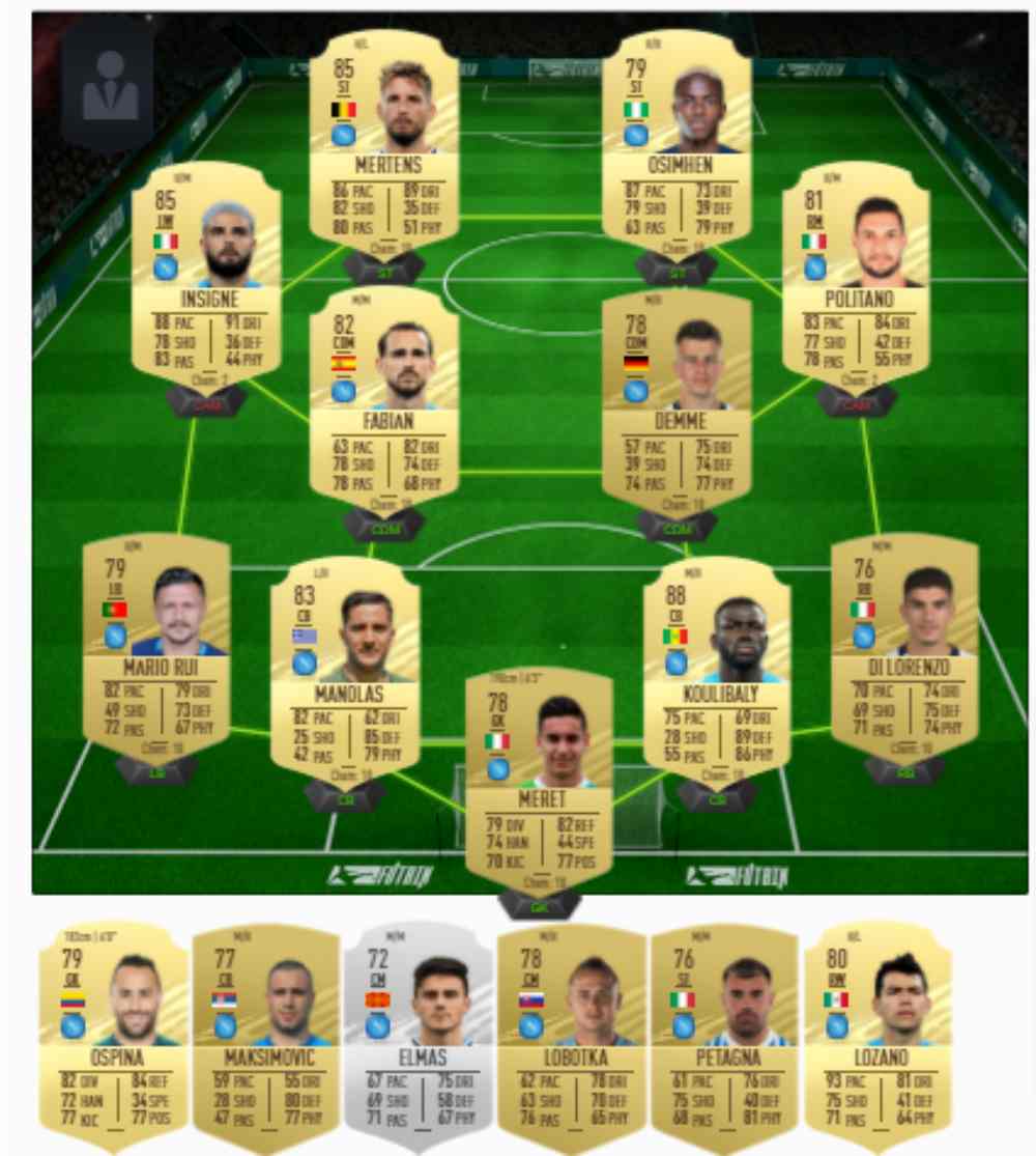 A centrocampo altra linea da 4. A proteggere la difesa Demme e Fabian, con Zielinski ed Elmas che ruotano. Esterno sinistro parecchio offensivo il capitano Lorenzo Insigne, con compiti più offensivi e votati all’attacco e alla creazione di superiorità numerica. A destra Politano per dare più equilibrio, con la freccia Lozano pronta ad essere inserita a gara in corso o ad alternarsi.