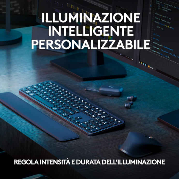 La tastiera è, inoltre, retroilluminata e i tasti si accendono con l’avvicinarsi delle mani, adattandosi all’ambiente in cui si trovano. Anche in questo caso, per personalizzare l’illuminazione si può utilizzare Logi Options+.