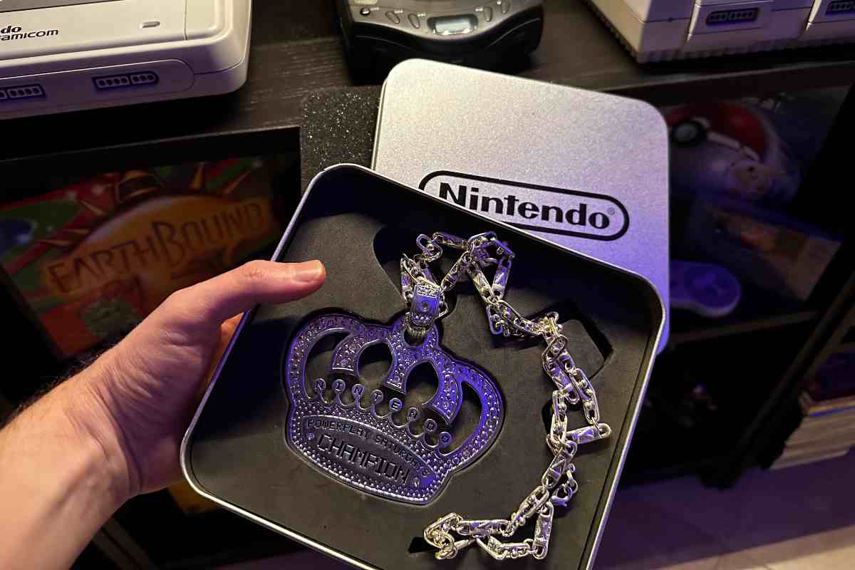 Perché dentro la scatola di metallo c’è una collana con tanto di catena un po’ ingombrante ma soprattutto da cui pende una corona con scritto Powerplay Saturday Champion lavorata con un motivo che permette di fingere che sia ricoperta di diamanti. Tra i molti racconti di chi c’era nei GameStop in quel momento tanti ricordano proprio come la società giapponese fosse avanti e molto più coraggiosa in quel periodo di quanto gli altri competitor fossero all’estero o siano anche adesso.