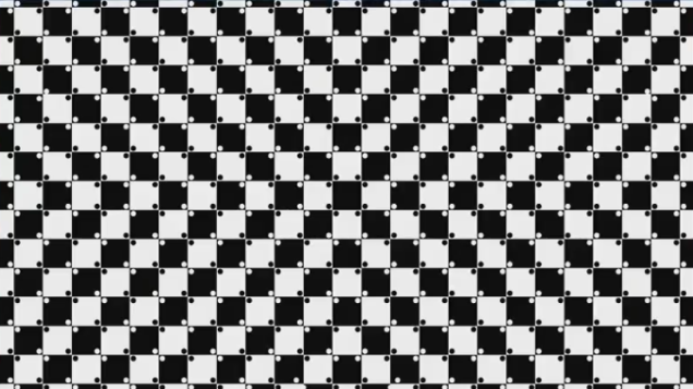 Invece no! Ecco la stessa immagine senza puntini, che sono l’unica vera differenza fra le due. La semplice aggiunta di questi punti inganna il cervello, convincendolo di vedere un oggetto curvo quando in realtà non lo è.