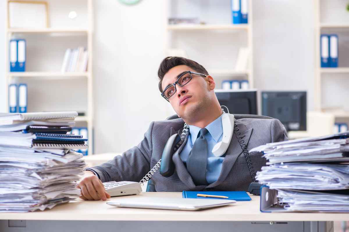 uomo triste in ufficio