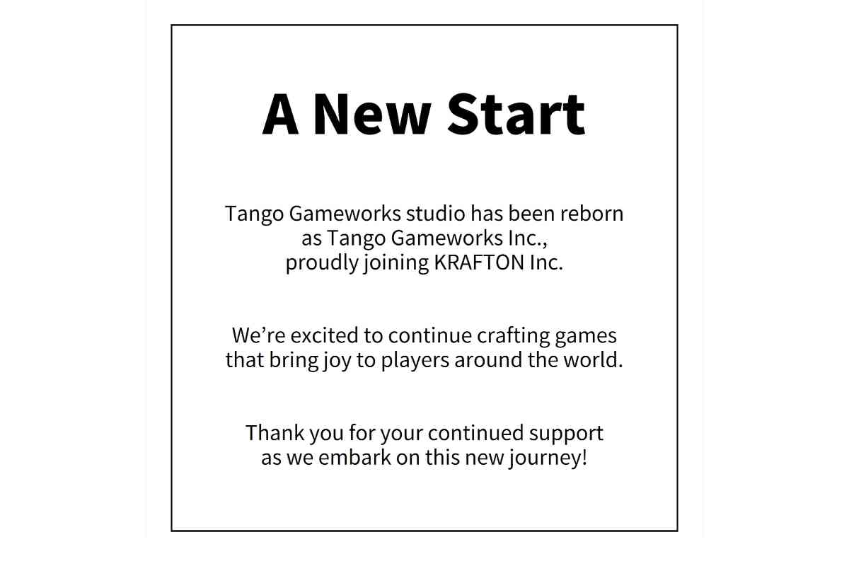 Stavolta invece sull’account di Tango Gameworks è apparso un messaggio che per una volta non è un addio. Il team di sviluppo si unisce infatti ufficialmente a Krafton con il nome di Tango Gameworks Inc. Rispetto al nome completo precedente è stato semplicemente aggiunto Inc.