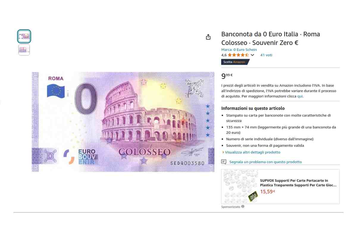 Quando ti dicono che su Amazon si trova veramente di tutto è la verità. È il caso di questo oggetto, una banconota, che puoi acquistare perché, nel tempo, rischia di avere un valore molto più alto sia di quello nominale stampato sulla carta moneta sia rispetto anche al valore che gli attribuisce lo store all’interno di Amazon su cui l’oggetto è acquistabile.