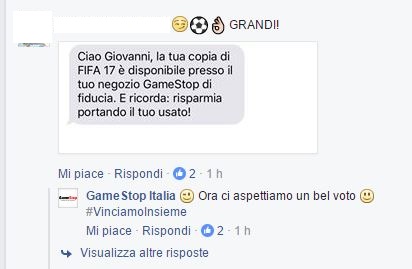 Se non vi bastasse questo post, potete dare anche un’occhiata a questo commento fornito da GameStop alla foto di un utente che mostrava l’sms tipicamente smerciato a quanti prenotano un gioco anzitempo.