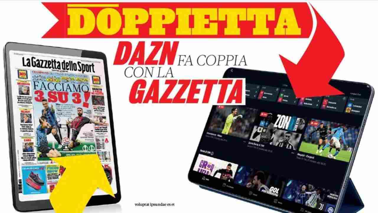 Da quando è iniziata la stagione di Serie A 2022-2023, Dazn, la piattaforma video streaming che trasmette tutte le partite del campionato, di cui 7 in esclusiva assieme a Timvision, ha proposto varie promo ai propri utenti, e l’ultima è giunta in queste ore, e farà senza dubbio felici i milioni di lettori de La Gazzetta dello Sport, il quotidiano più venduto nel nostro Paese.