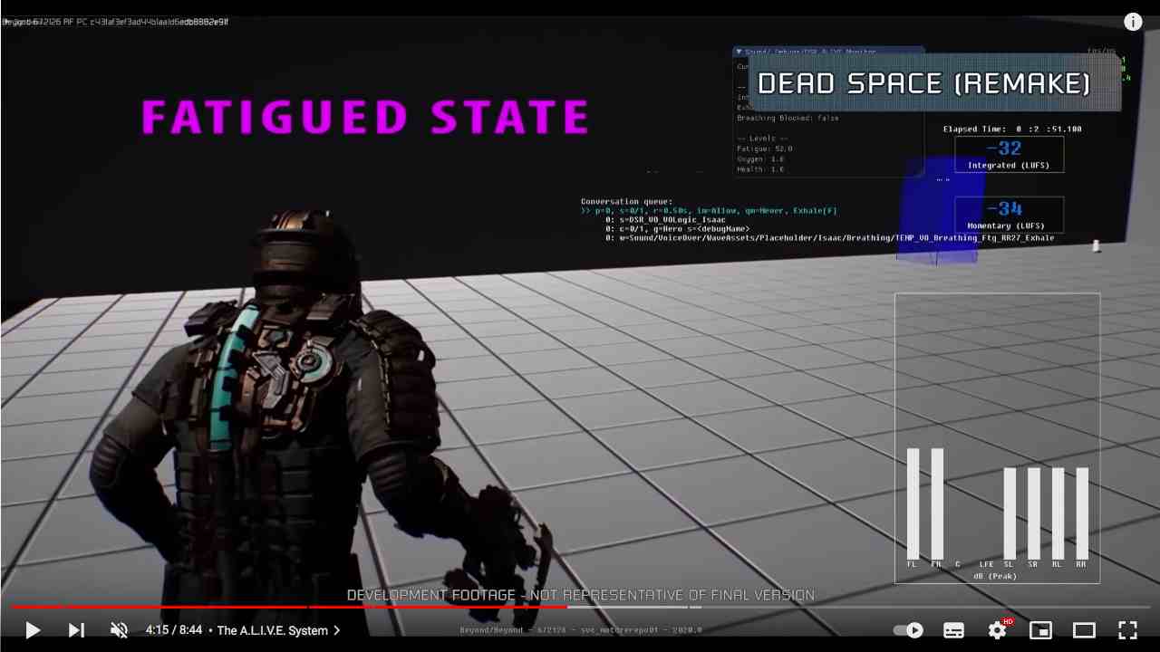 Tutto il video sicuramente vale la pena di essere visto ma quello che vogliamo toccare con mano è il cosiddetto sistema A.L.I.V.E, gli sviluppatori hanno così denominato il nuovo modo con cui il gioco gestisce gli effetti audio. Tra questi effetti audio ci sono ovviamente due suoni che i giocatori di vecchia data di Dead Space conoscono approfonditamente: il respiro affannato di Isaac e il suo battito del cuore. Il sistema A.L.I.V.E. funziona un po’ come un ray tracing dell’audio.