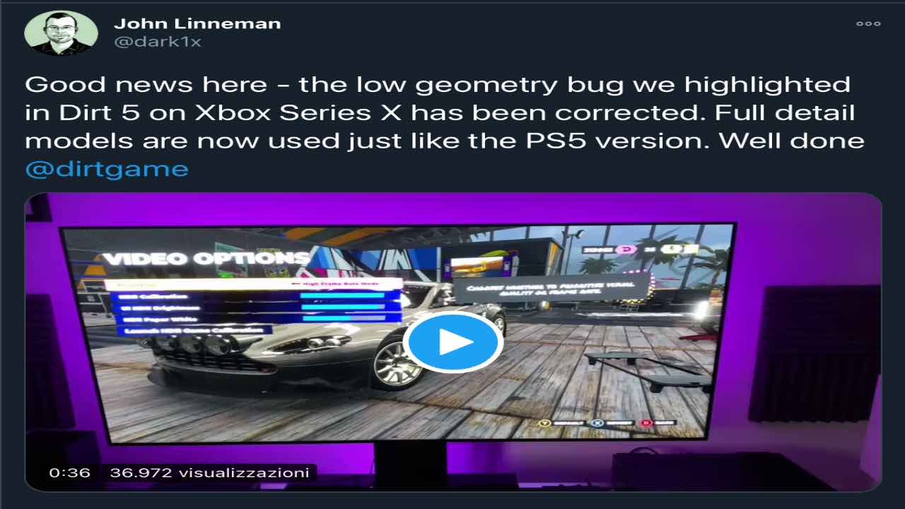 Dirt 5 l’aggiornamento risolve il bug, ora Xbox Series X come PS5