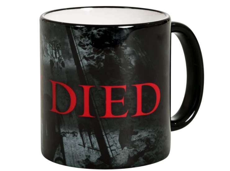 YOU DIED, o meglio SEI MORTO, recita la parte esterna di questa tazza, con tanto di sfondo e font che ha utilizzato FromSoftware per notificare dell’ennesimo fallimento i videogiocatori di Dark Souls e di Elden Ring. Una schermata amarissima che in tanti hanno visto, spesso reagendo con rabbia senza misura e tristezza profondissima, se non addirittura disperazione totale e lacrime.