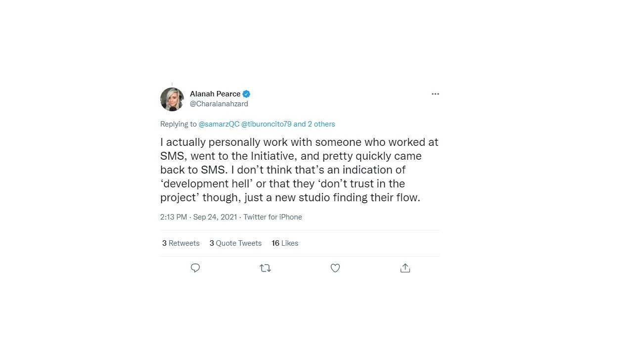 Possibile che si lavori così male dentro The Initiative? Un team piccolo e scalcinato? Del resto Pierce, che oltre a lavorare in un team di sviluppo è stata anche giornalista, dovrebbe riuscire a fiutare una notizia e fa presente che se si trattasse semplicemente di fare outsourcing per dare un aiuto nello sviluppo del titolo, dato che The Initiative è un mucchietto di 70 persone neanche, non ci sarebbe stato poi tutto questo bisogno di annunciarlo con la fanfara.