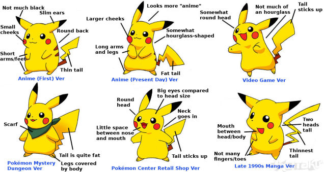 La stessa trasformazione la subiscono altri personaggi negli anime, come dicevamo, nel corso del tempo. Anche a Pikachu è toccata la stessa sorte (come potete vedere qui sotto), anche se non possiamo dire sia peggiorato.