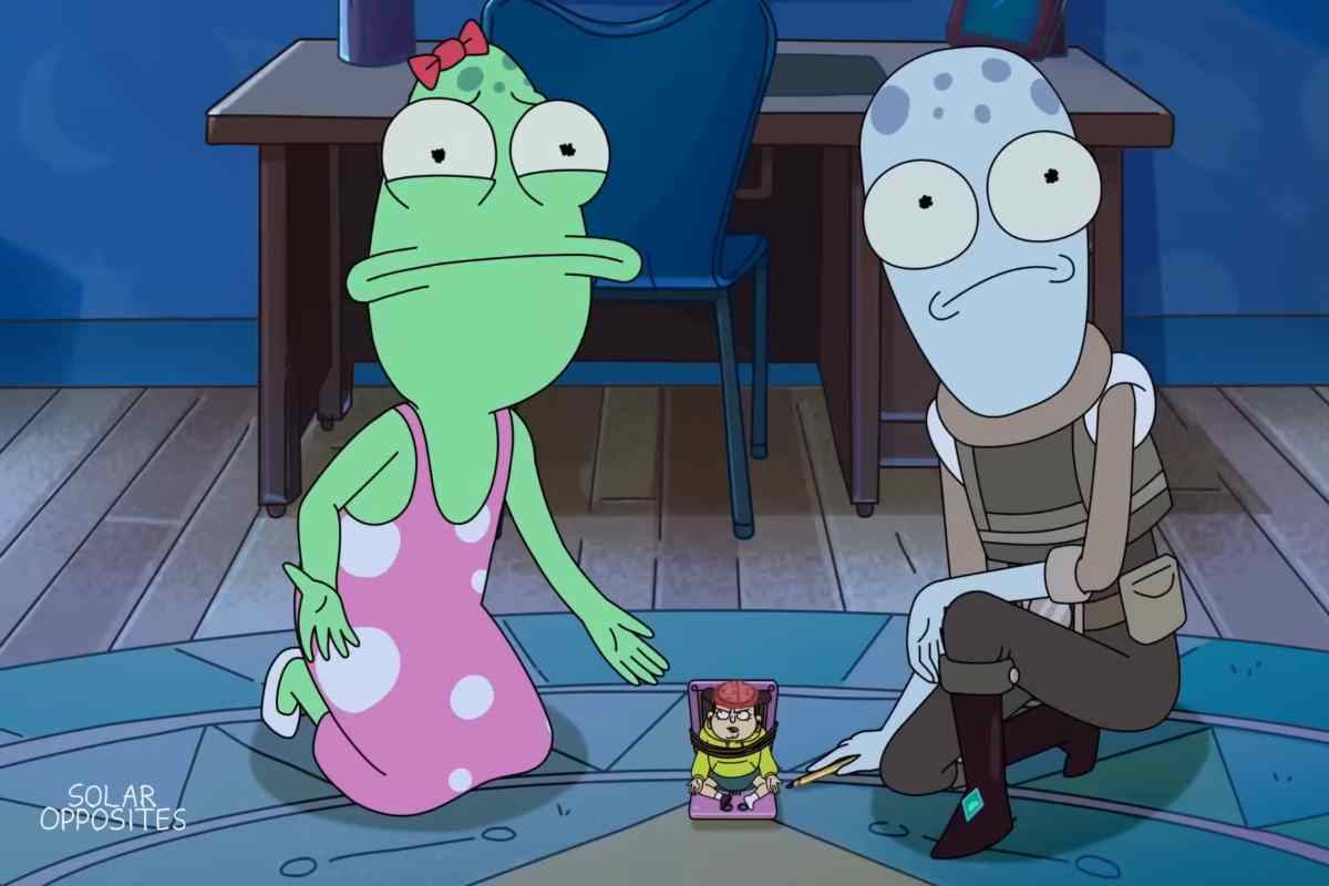 Solar Opposites ama la strada tra il racconto di fantascienza e la presa in giro della nostra vita di tutti i giorni. Per esempio in un episodio la famiglia aliena impazzisce per una serie TV mentre in un’altra padre e figlio, se così si possono chiamare, decidono che è arrivato il momento di costruirsi un loro rifugio per soli maschi dentro casa.