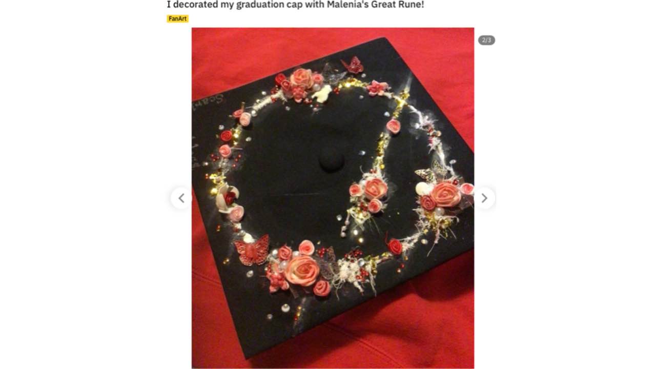 Un recente video ha anche fatto vedere come, un boss di Bloodborne, sia entrato in ER. Nelle ultime ore online è apparso un post dell’utente reddit Sirensbloodbath, che ci ha lasciati praticamente a bocca aperta. Un ragazzo che ha preso la decisione di modificare il proprio cappello di laurea, scegliendo di mettere sulla sua superficie la grande Runa di Malenia. Al suo interno non mancano inoltre degli elementi che riporteranno immediatamente alla mente alcune scene particolari. Un cappello che è stato fotografato e che sta facendo il giro del web.