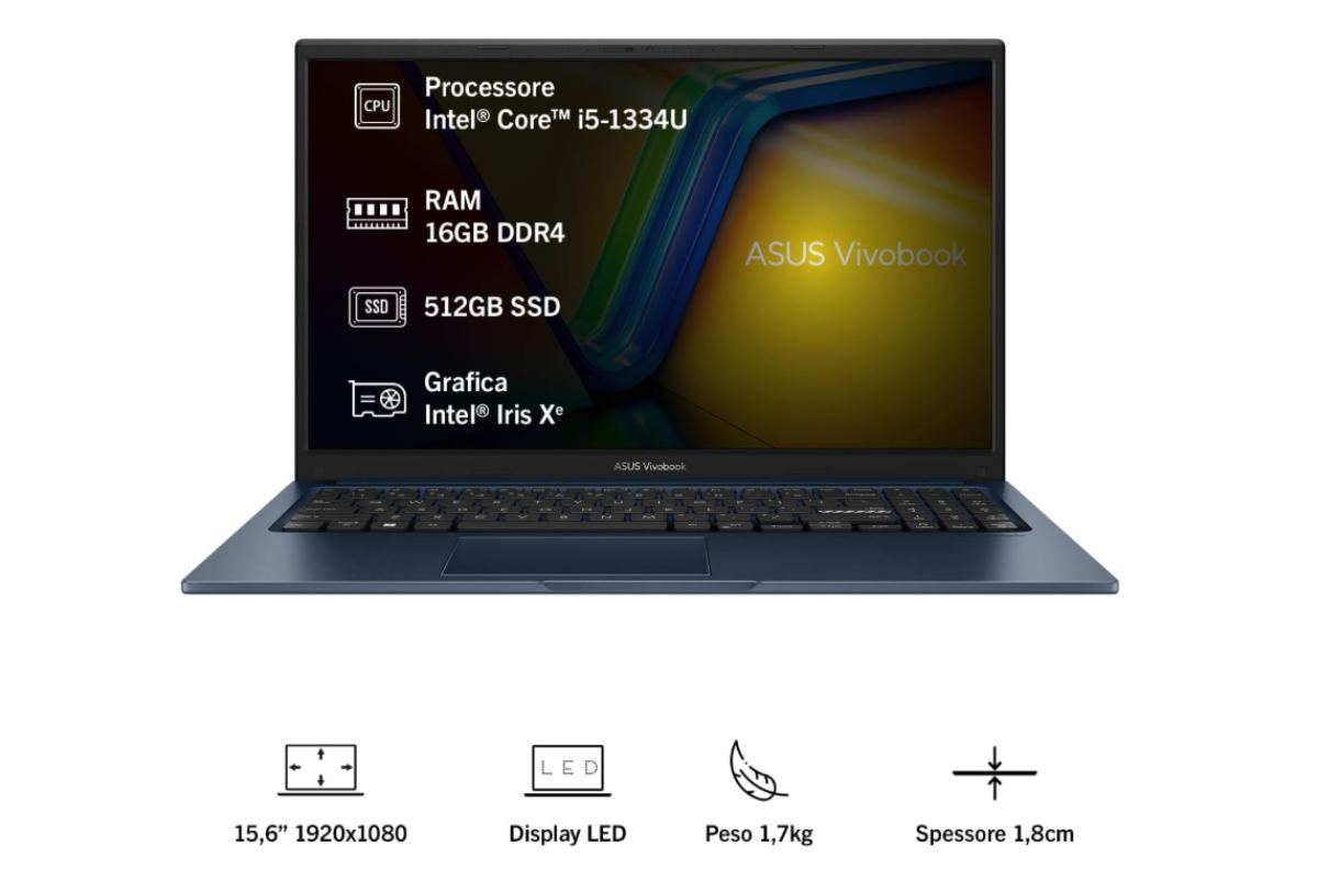 Per quanto concerne la potenza parliamo di un Asus Vivobook che monta a bordo un processore Intel Core di tredicesima generazione i5-1334U, mentre la scheda grafica è Intel Iris Xe. I 16GB di RAM e l’SSD PCIE da 512GB assicurano tanta fluidità e velocità nelle operazioni quotidiane. Su Amazon è disponibile a un prezzo molto aggressivo.