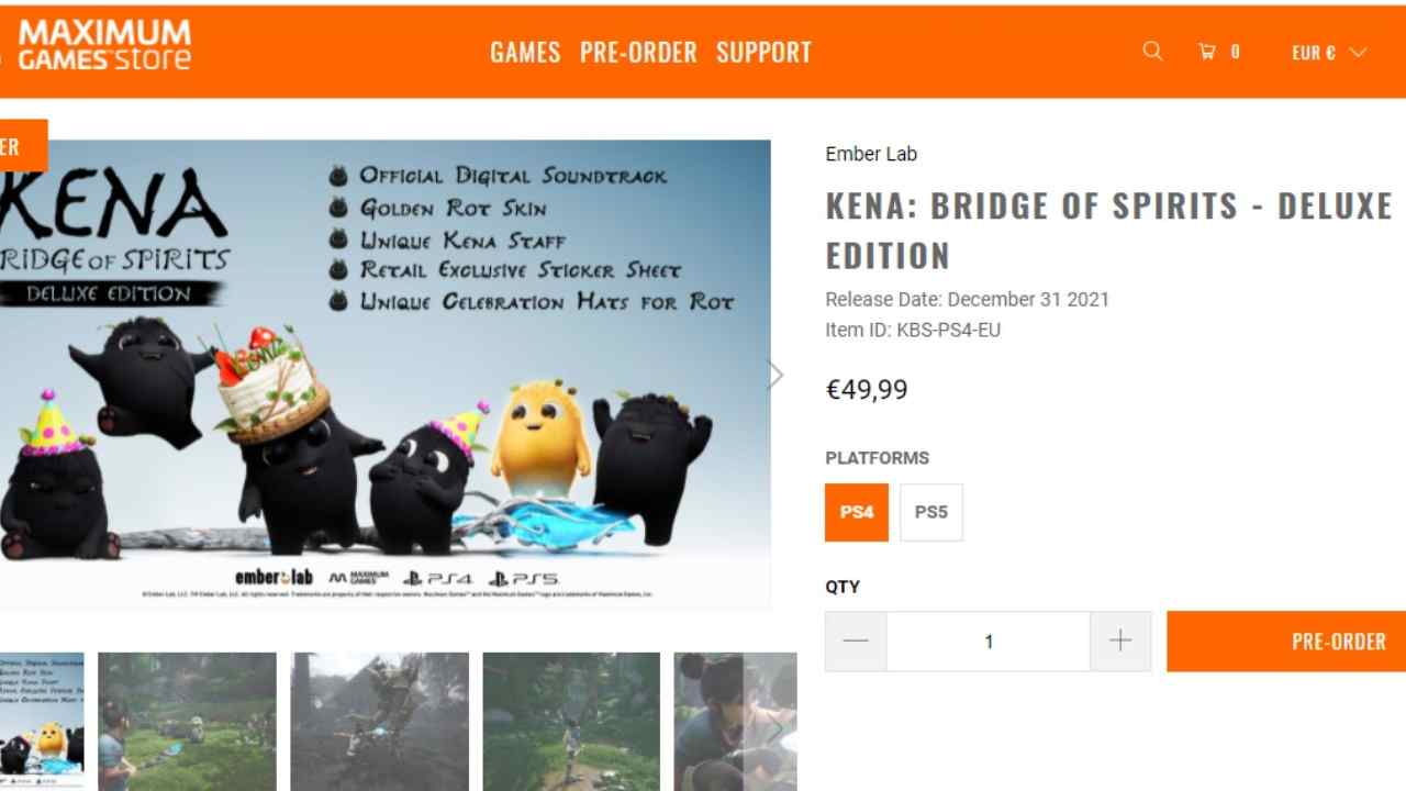 Abbiamo infatti riscontrato una strana anomalia sul sito del distributore: l’edizione Deluxe di Kena: Bridge of Spirits con il prezzo in euro, quindi automaticamente destinata al nostro mercato, viene indicata con una data d’uscita al 31 dicembre. Ci toccherà aspettare un altro mese rispetto all’uscita per gli altri mercati?