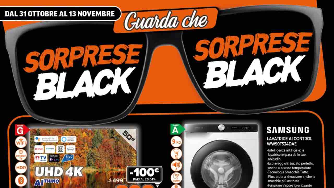 Non mancano anche le anticipazioni del Black Friday in casa Expert, la nota catena di rivendita che, come i suoi competitor, ci regala un volantino dal sapore di venerdì nero. Ecco le “Sorprese Black”, valide solo e soltanto fino al 13 novembre 2022.